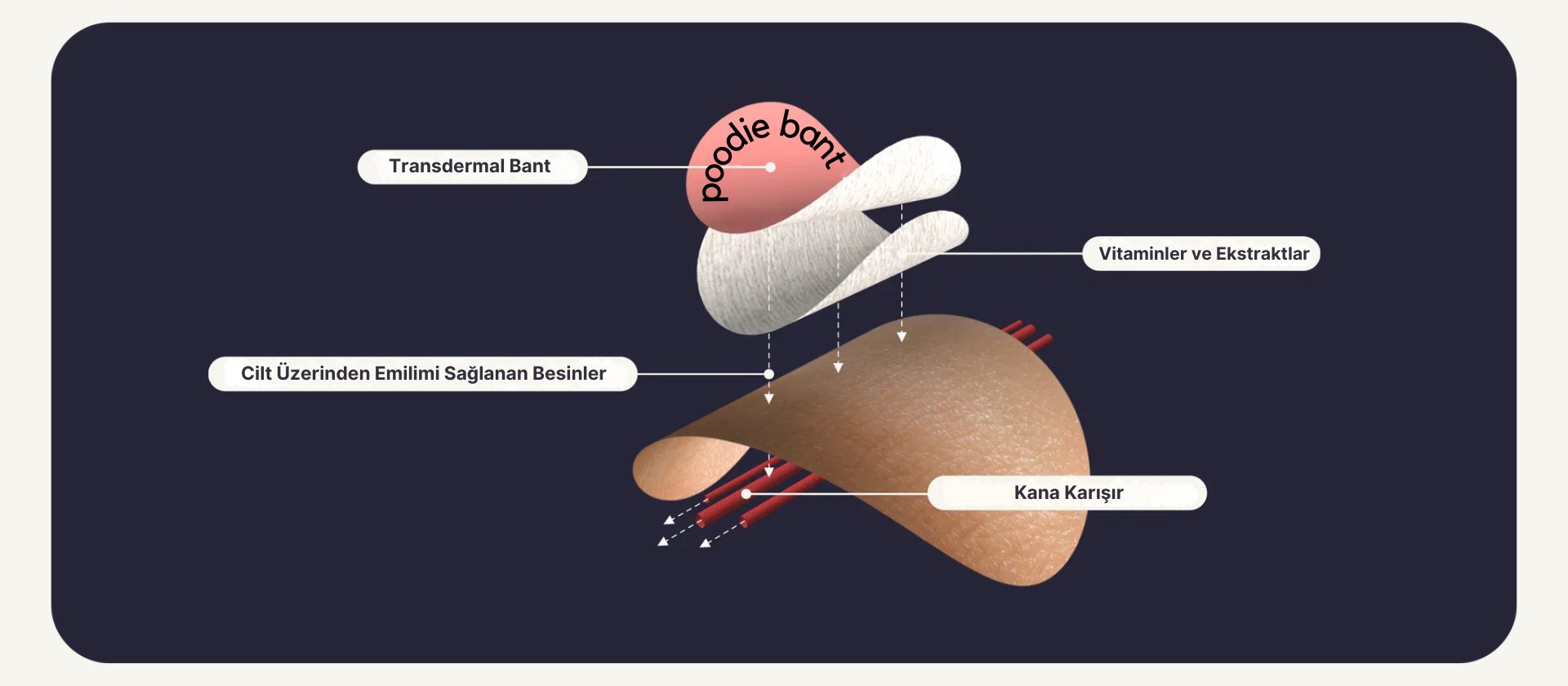 Her bir Poodie Bant, besinlerin sindirimini tamamen atlayarak cilt yoluyla kan dolaşımına iletmek üzere özenle tasarlanmıştır.